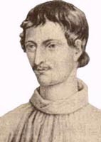 喬爾丹諾·布魯諾勇敢的捍衛和發展了哥白尼的太陽中心說,并把它傳遍歐洲,被世人譽為是反教會、反經院哲學的無畏戰士,是捍衛真理的殉道者。1548年,布魯諾出生在意大利那不勒斯附近諾拉城一個沒落的小貴族家庭。在十余歲時,父母將他送到了那不勒斯的一所私立人文主義學校就讀。布魯諾在這所學校學習了六年。1565年,布魯諾在強烈的求知欲的驅使下,進入了多米尼克僧團的修道院,第二年轉為正式僧侶。布魯諾在修道院學校攻讀神學,同時他還刻苦鉆研古希臘羅馬語言文學和東方哲學。10年后,他獲得了神學博士學位,還得到了神甫的教職。