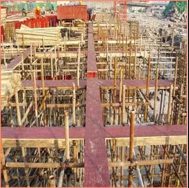 樓板模板:模板支撐體系經(jīng)過嚴格驗算,并履行審批手續(xù),確保支撐體系的剛度、強度及穩(wěn)定性。嚴格控制模板起拱高度,跨度大于或等于4m的梁板按2/1000起拱。跨度8.4m樓板按1.5cm起拱。