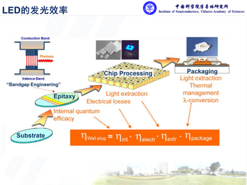 氮化鎵是直接帶隙的半導體材料,在光電應用方面具有獨特優勢?;诘壍腍B-LED對于通用照明來說,其核心問題是發光效率。其中外量子效率主要取決于三個層面的因素,內量子效率、光提取效率,還有封裝方面的熒光轉化等效率,而且每個環節都息息相關。