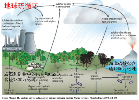 硫磺是重要化工原料,我國是硫磺消耗大國也是進口大國,2017年我國硫磺進口達1123.6萬噸,產量590萬噸。硫循環是地球三大物質循環之一,硫各種價態間轉化的實現均由硫細菌來完成(圖1-1)。