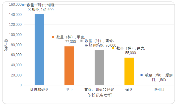 圖1. 主要昆蟲(chóng)類群中傳粉昆蟲(chóng)種類估計(jì) (Wardhaugh, 2015)