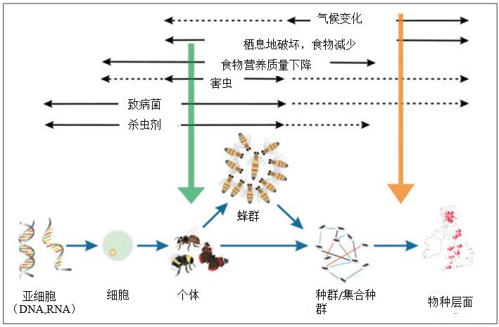 圖3 各種環(huán)境因素對(duì)傳粉昆蟲(chóng)的各個(gè)層面的影響